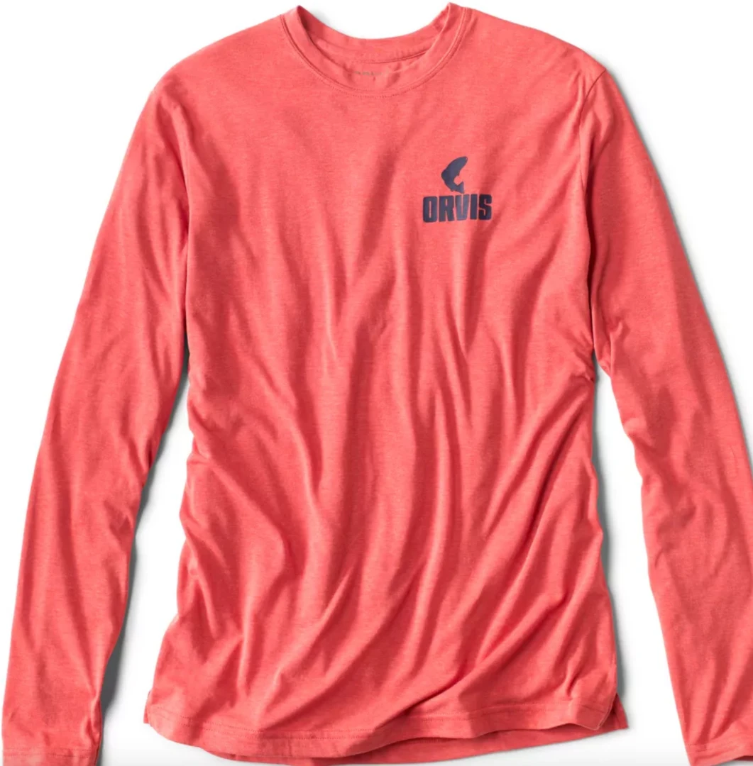 Long-sleeved T-shirt with retro logo in drirelease performance blend of 85% polyester, 15% cotton. Naturally moisture wicking and quick drying with no chemical or topical treatments. Dries four times faster than cotton with a soft, natural feel. Built-in odor protection.